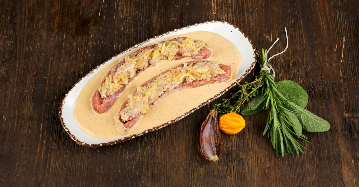 Gefüllte Schalotten-Bratwurst in Gewürzsauce
