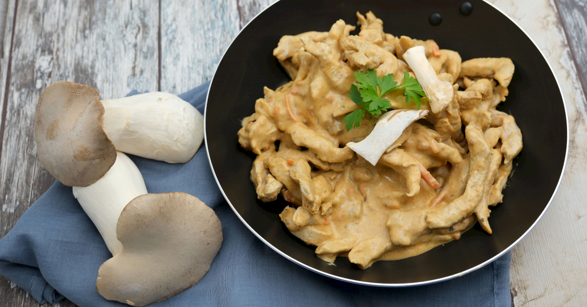 Schweinegeschnetzeltes mit Eldo-Fix in einer Schüssel gut vermischen. In einer Pfanne anbraten und mit Sahne ablöschen.