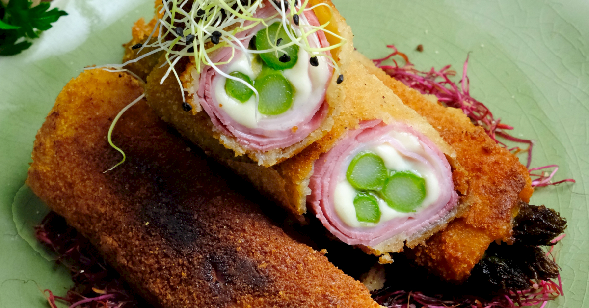 3 Spargel, aufgetaut, am Anfang hinlegen und kompakt einrollen.